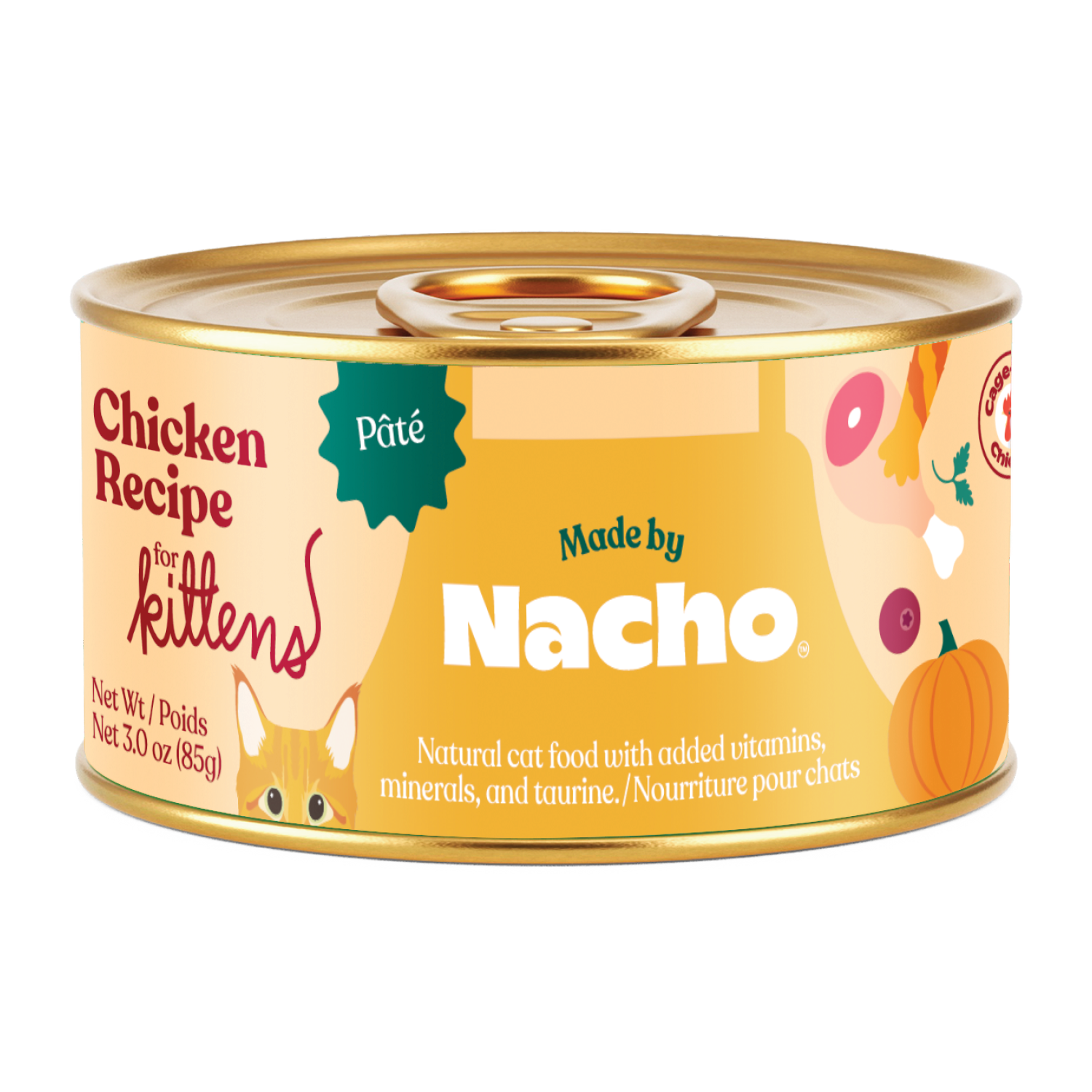 Big nutrition for little cats starts with Made by Nacho Chicken Recipe Pâté Wet Kitten Food. Made with premium cage-free chicken, this smooth pâté is slow-simmered in savory bone broth for crave-worthy flavor and added hydration.