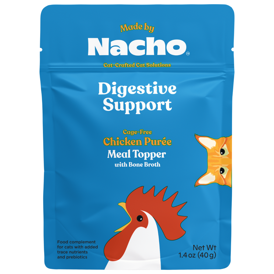Made By Nacho Digestive Support Meal Topper Cage-Free Chicken Puree is intended for intermittent or supplemental feeding only.