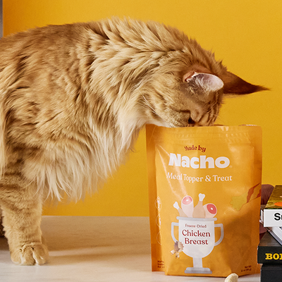 Kittens need extra protein and fat to flourish, so we developed a chef-inspired recipe that will help them thrive. We start with premium cage-free chicken (real protein is our #1 ingredient) and add chicken liver for strong muscles and irresistible flavor. DHA helps with brain development and taurine supports vision, while prebiotics and probiotics keep little tummies happy. Finally, we infuse every bite with bone broth, Nacho’s signature ingredient, for concentrated protein and whisker-smacking taste.