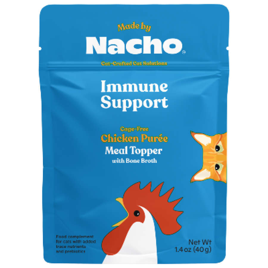 Made By Nacho Immune Support Meal Topper Cage-Free Chicken Puree is intended for intermittent or supplemental feeding only..